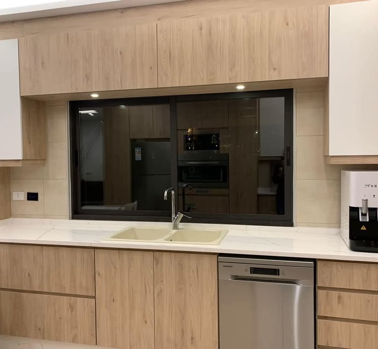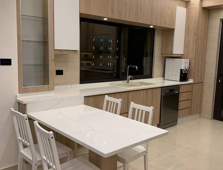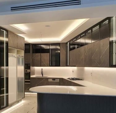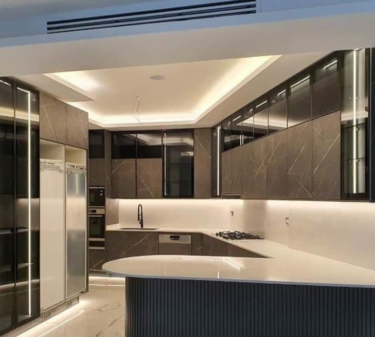تصاميم مطابخ عصرية مُصمَّمة خصيصًا، تجمع بين الفخامة والعملية بأعلى معايير الجودة.